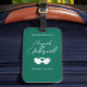 A great keepsake to honour your special day. Custom luggage tag in emerald green. Simply change the text to suit your needs. Joined heart design. Use the template to personalise.
