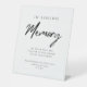 Perfect for a wedding memorial display, this timeless design features clean typography and a sophisticated black and white palette that complements any wedding style, from classic and formal to modern and minimalist. Place this pedestal sign sign on your wedding memory table, alongside photographs, candles, or keepsakes to celebrate the presence of loved ones who are deeply missed but never forgotten. A beautiful and thoughtful way to ensure those who cannot be there in person are still part of your special day. Please visit our Wedding Remembrance Sign Collection in the Beautifully Abstract store to view a variety of elegant luxury remembrance signs as a part of your wedding decor.