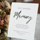 Honor the loved ones who are forever in your heart with this elegant black and white wedding memorial tabletop pedestal sign. Designed with a modern minimalist aesthetic, this In Loving Memory sign adds a meaningful and heartfelt touch to your wedding remembrance table.