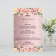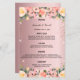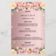 An elegant wedding menu card. Dusty rose, blush pink faux metallic looking background, faux glitter dust. Pink lush watercolored roses as decor. Personalise and add your names, date and the wedding menu. Black coloured letters.