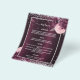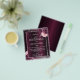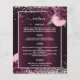 An elegant, glamourous wedding menu. A deep burgundy gradient background, decorated with faux silver glitter, sparkles and pink and burgudny flowers. White text. Personalise and add the menu.