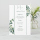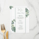 This wedding menu card is shown on basic paper in a lovely greenery vine print. Script and standard text in a green colour.