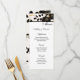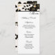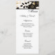 This wedding menu card is shown on basic matte paper in a lovely black and gold metallic floral print.