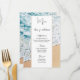 This Menu Card template is shown in the basic matte paper with a lovely beach photo print with script and standard text in black.