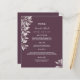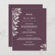 An elegant and trendy wedding menu card. Dusty rose watercolored botanical florals, leaves. Templates for your names, date and the wedding menu. A chic cassis, deep purple coloured background. White coloured letters.