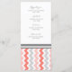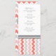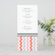 Elegant wedding dinner menu in elegant peach orange pink, grey and white chevron zigzags retro pattern, customisable with your dinner details, available in a wide range of matching wedding products.