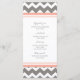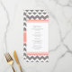 Elegant wedding dinner menu in elegant peach pink orange, grey and white chevron zigzags retro pattern, customisable with your dinner details, available in a wide range of matching wedding products.
