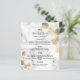 Personalise and add your names, date and the wedding menu. Marble stone print as background, decorated with golden eucalyptus sprigs.