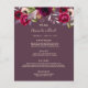An elegant bohemian boho style wedding menu card. Lush watercolored roses, in pink and burgundy. Templates for your names, date and the wedding menu. Cassis background on front, cassis, deep purple on back. Golden coloured letters.