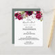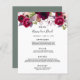 An elegant bohemian boho style wedding menu card. Lush watercolored roses, in pink and burgundy. Templates for your names, date and the wedding menu. White background on front, sage green on back. Black coloured letters.