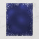 A classic wedding menu. A navy blue background, decorated with faux silver glitter sparkles. The blue colour is uneven. White text. Personalise and add your name, date and the menu.