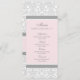 Wedding dinner menu in elegant light blush pink, grey and white classic floral damask pattern, customisable with your details and available in matching wedding products.