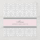 Wedding dinner menu in elegant light blush pink, grey and white classic floral damask pattern, customisable with your details and available in matching wedding products.