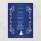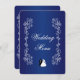 Wedding dinner menu bride and groom design royal blue coloured. You can customise this royal blue coloured wedding dinner menu with your wedding details. Should you require any help with customising then contact us through the link on this page. Bride and groom design royal blue coloured personalised wedding dinner menu