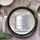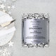 An elegant and glamourous wedding menu card. Black and white watercolored roses as decor. Templates for your names, date and the wedding menu. A faux silver frame and a faux silver metallic looking background colour. Black coloured letters.