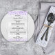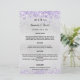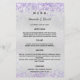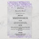 An elegant, glamourous wedding menu card. Personalise and add your names, date and the wedding menu. Faux silver looking background, decorated with purple, lavender confetti.