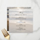 Wedding dinner menu with a beautiful photo of the waves crashing on the beach at sunset, perfect for a beach or tropical wedding, customisable with your details and available in matching wedding products.