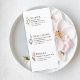 Ideal for place settings or menu displays, this design enhances your overall wedding aesthetic while offering a warm, inviting presentation of your meal selections. Personalize each section with your chosen courses to create a seamless and memorable dining experience.