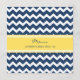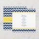 Wedding dinner menu in elegant dark navy blue, bright lemon yellow and white with fun retro chevron zigzags pattern, customisable with your details and available in matching wedding products.