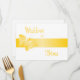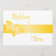 Wedding dinner menu yellow coloured butterfly design. You can customise this yellow coloured wedding dinner menu with your wedding details. Should you require any help with customising then contact us through the link on this page. Yellow coloured butterfly design personalised wedding dinner menu