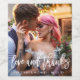Modern Brush Script Wedding Love and Thanks Photo Thank You Wine and sparkling wine Bottle Label