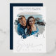 Modern Brushstroke Photo Engaged Couple for Wedding Foil Metallic Save the Date Card with Envelope.