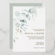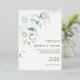 WEDDING | Simple and chic, a delicate branch of dusty blue green eucalyptus greenery cascades down the left side with the wedding text aligned right - text leaf highlights in foil - gold , rose gold or silver a rustic elegant appeal. This is part of a wedding stationery collection with matching wedding accessories. WhimsicalArtwork created for the BarefootBride™