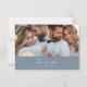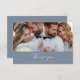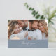 Budget dusty blue modern minimal simple contemporary script multi photo wedding thank you card. Part of a suite.
