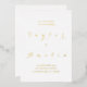 This is a modern, minimal, real gold foil, Wedding Invitation design. It has elegant typography /script. On the front in real gold foil, it says, "You Are Invited To Our Wedding", with space for your names, wedding date, time and location. On the back, (with gold coloured text), it says "Our Wedding", space for your initials, and wedding date. This minimal design is perfect to invite your family and friends to your special day. To personalise, simply type your names, wedding information, and initials, into the personalise this text box. Here you can also make changes to the rest of the text, if you want to. To change the colour or font, check out the design editing tool. If you need help with personalisation, matching products, or for a custom design contact me via zazzle chat or email: ursuladawnmoon@gmail.com
