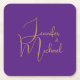 Wedding Modern Minimalist Plain Calligraphy Name Square Paper Coaster