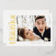 This is a modern wedding thank you card using a bold typography style font in real gold foil, along with a minimalistic simple photo design.