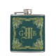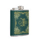 Wedding Monogram Classic Gold Frame Dark Green Hip Flask