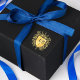 The gold on black gives a luxurious feel. An eye catching element, a label for your wedding stationary.