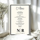 Introducing our Off White and Black Wedding Monogram Customised Rehearsal Dinner Menu, a refined addition to your wedding festivities that combines timeless elegance with personalised charm. Crafted to perfection, these menus set the stage for an unforgettable rehearsal dinner, engagement party, or wedding reception.