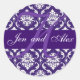 Purple Damask with Monogram Wedding Favour stickers. Design by Elke Clarke© Graphics licensed for use.