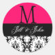 Wedding Monogram Names Damask Hot Pink Seal