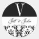 Wedding Monogram Names Date Damask Black White Classic Round Sticker