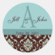 Wedding Monogram Names Date Damask Brown Blue Classic Round Sticker
