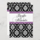 Wedding Monogram Purple Damask Invitation Back