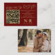 Enhance your wedding stationery with our Dark Red and Gold Wedding Monogram QR Code RSVP With Photo Elegant Enclosure Card, a perfect blend of classic sophistication and modern convenience.