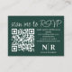 Make a lasting impression with our White and Emerald Green Wedding Monogram QR Code RSVP With Photo Elegant Enclosure Card. It’s the perfect combination of elegance and innovation, providing a simple yet sophisticated way for your guests to respond to your special day.