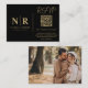 Make RSVPing to your wedding a breeze with our Black and Gold Wedding Monogram RSVP QR Code Photo Elegant Enclosure Card, the perfect blend of classic elegance and modern convenience.