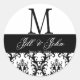Wedding Monogram Save Date Damask Black and White Classic Round Sticker