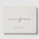 A simple elegant couple's wedding name monogram with ampersand, date and location, on a white faux linen effect background. simple elegance. Wedding guest signing keepsake book. Elegant ancient serif type modeled on Roman engraving style.