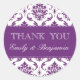 Wedding Names Purple Damask Thank You Labels