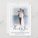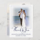 Wedding Nautical Anchor 2 Photos Script Thank You Cards. Send pre-printed wedding thank you messages or handwritten notes of appreciation with these nautical themed navy blue and white photo thank you cards featuring 2 pictures (one on each side) and a modern calligraphy script typography title accented with an anchor. ASSISTANCE: For help with design modification or if you would like coordinating items, contact the designer BEFORE ORDERING via the Zazzle Chat MESSAGE tab below or email makeitaboutyoustore@gmail.com.