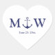 Wedding nautical anchor navy blue white monogram heart sticker