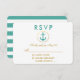 Nautical Wedding Teal Anchor Gold RSVP Card - Striped Back