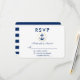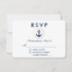 Nautical Wedding Blue Anchor Gold RSVP Card - Striped Back - Blue Text