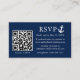 Wedding Nautical Navy Blue Anchor RSVP QR Striped Enclosure Card